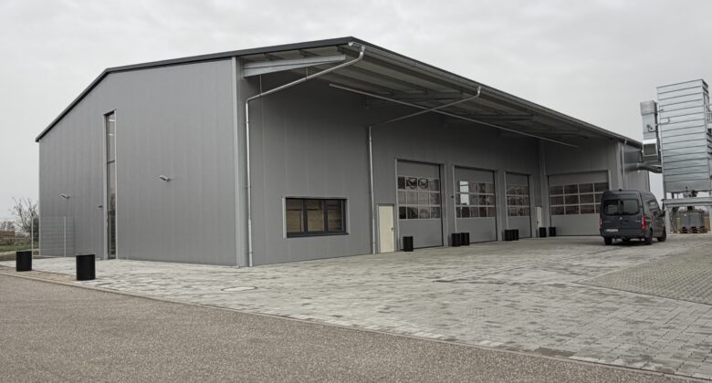 Das Projekt wird vom Bensheimer Architekturbüro mo+ gesteuert. Die über 600 m² große Lagerhalle mit integriertem Büro hat eine kubische Bauform und eine Höhe von